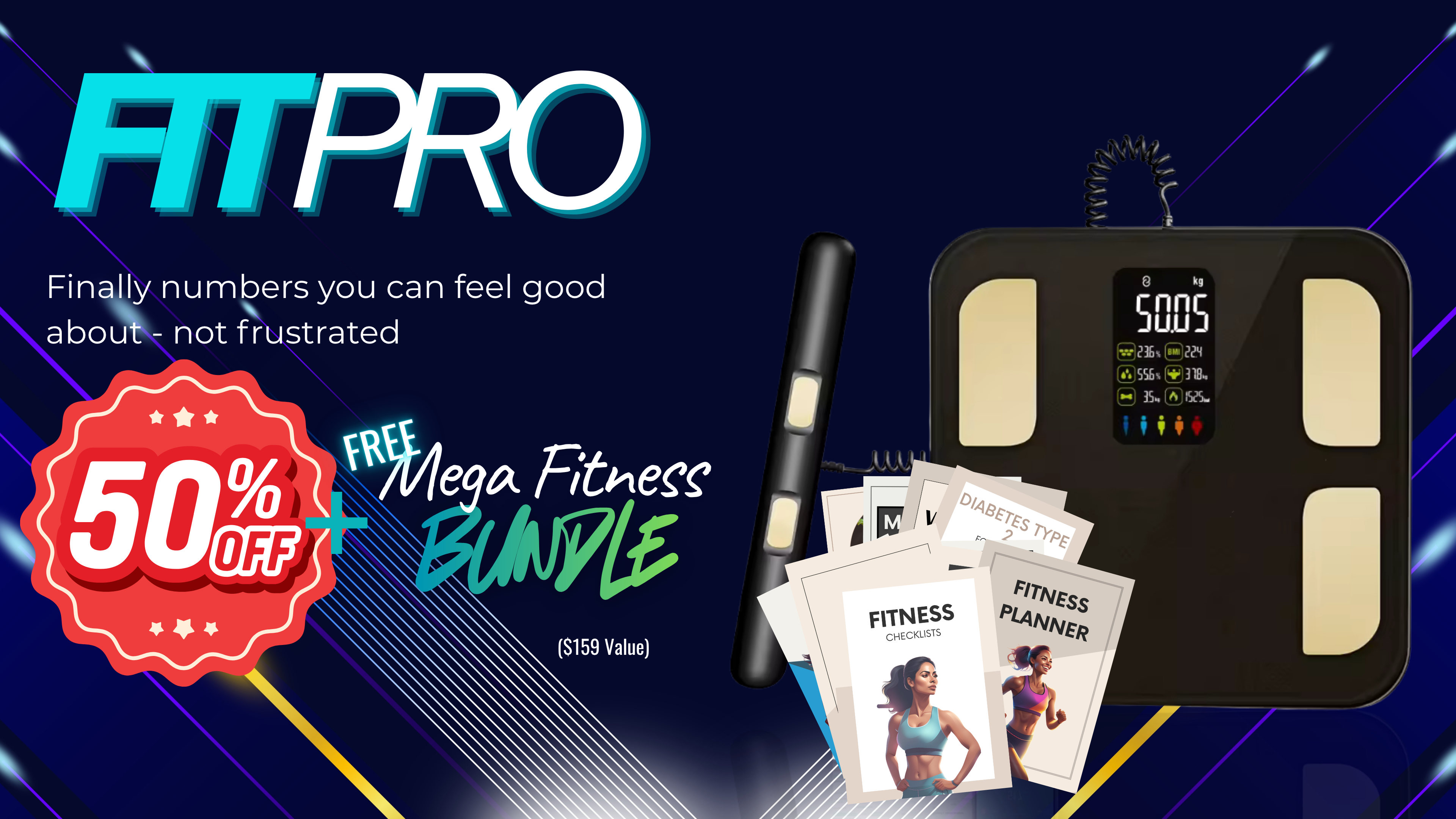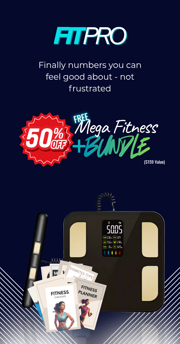Unlock the FitPro Smart Scale (valued at $299.99) for only $149.99, and get the Mega Fitness Bundle — 10 digital tools worth $159 — FREE with your purchase.